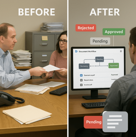 Rulare automată a documentelor prin pași de revizuire și semnare.